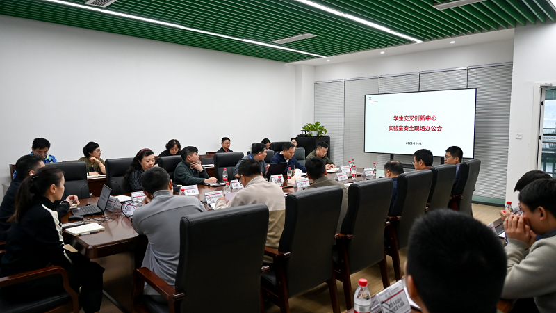 2025年11月13日下午,学生交叉创新中心召开实验室安全现场办公会。会议由本科生院党委书记李楠、本科生院院长兼教务处处长刘猛、国家卓越工程师学院党委书记、执行院长、本科生院学生交叉创新中心主任罗远新、实验室及设备管理处副处长袁云松,以及各共建实验室学院负责领导、中心各实验室负责老师等共同参会。