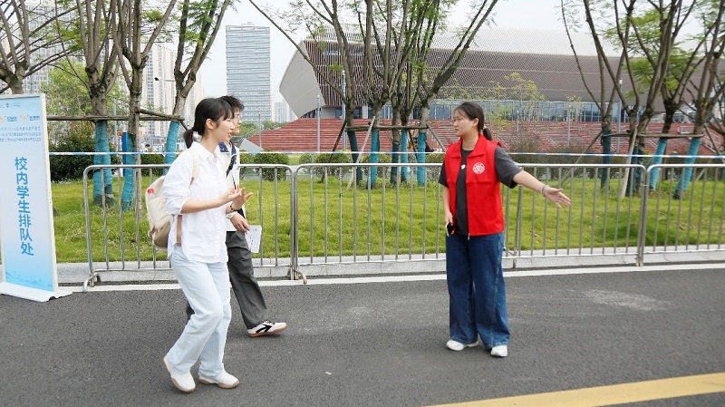 2025年10月16日,第一期活动体验岗位设置在“重庆大学2026届毕业生秋季大型双选会”现场,同学们以安保执勤员的身份,参与到这场大型活动的安全服务保障工作中。在保卫处工作人员的指导下,同学们迅速投入到各自岗位,从入场人员的分流与引导,到查验凭证,再到维持现场秩序,同学们一丝不苟地履行着“安全卫士”的职责。